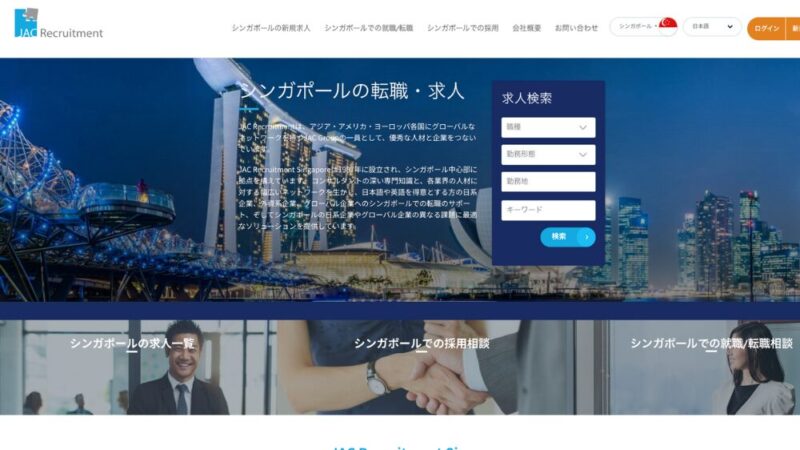 国ごとに担当者は分かれてしまいますが、シンガポールだけでなく東南アジアへの転職を考えている方におすすめの転職エージェントです。